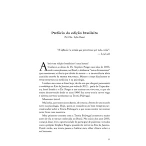 O criador da Teoria Polivagal explica seus princípios em termos simples e acessíveis a todos.Desde que Stephen Porges propôs pela primeira vez a Teoria Polivagal em 1994, sua ideia central de que o nível de segurança que sentimos impacta nossa saúde e felicidade transformou radicalmente a forma como pesquisadores e terapeutas abordam intervenções de trauma e interações terapêuticas. Ainda assim, apesar de sua ampla aceitação, a maior parte do que foi escrito sobre o tema permaneceu obscurecida por textos clínicos e jargões científicos. Nosso mundo polivagal apresenta de forma definitiva como a Teoria Polivagal pode ser compreendida por todos e demonstra como seus princípios práticos são aplicáveis a qualquer pessoa que busca viver sua vida mais segura, plena, saudável e feliz. O que emerge é uma visão de mundo repleta de otimismo e esperança, e uma compreensão de por que nossos corpos às vezes agem de maneiras que nossos cérebros gostariam que não agissem. Repleto de conselhos práticos e exemplos do mundo real, este livro vai mudar a forma como você pensa sobre seu cérebro, seu corpo e sua capacidade de manter a calma em um mundo que parece cada vez mais opressor e estressante.