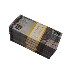 Nota Dinheiro 200 Reais Cédulas Sem Valor Pacote com 100 un Notas idênticas às reais. sem valor monetário Nas notas possui escrito SEM VALOR COMERCIAL Excelente para brincar, ostentar, gravação de vídeos, criação de conteúdo, entre outros. Possui tamanho e cores idênticas. Impressa em frente e verso. Marca: Não Informado