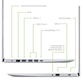 Conteúdo da Embalagem: Notebook Acer Aspire 5 Fonte carregadora do notebook Manual em português Termo de garantia