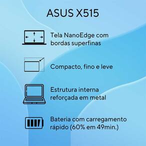 Conteúdo da Embalagem: Notebook ASUS X515 Carregador Manual
