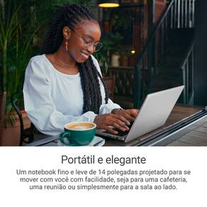 Tenha uma experiência de visualização confortável em um notebook de alta performance e compacto de 14 polegadas com taxa de proporção de 16:10 e tela com resolução Full HD.
