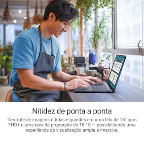 Aumenta sua produtividade pessoal e profissional com um notebook de 16 polegadas que oferece imagens vibrantes e o desempenho dos mais novos processadores Intel® Core™.