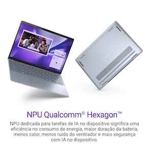 Poupe tempo, sempre! Tenha uma duração da bateria extraordinária aliada a uma performance poderosa com o Inspiron Copilot+, que conta com IA integrada graças ao processador Snapdragon® X Plus.O primeiro Inspiron Copilot+[1] equipado com o processador Snapdragon® X Plus redefine as possibilidades com IA inovadora integrada ao dispositivo, desempenho poderoso. Leve a sua experiência de IA a novos patamares em um design compacto com o reforço de uma bateria que tem duração de até 15 horas[2], seja para criar apresentações ou curtir um streaming de vídeo em qualquer lugar.Desempenho revolucionário com o Snapdragon® X PlusCPU Qualcomm® Oryon: Melhore seu desempenho e sua eficiência com o Snapdragon X® Plus de 10 núcleos, para que você possa criar, colaborar, compartilhar e lidar rapidamente com cargas de trabalho complexas.GPU Qualcomm® Adreno™: Renderiza gráficos impressionantes e de alta qualidade.NPU Qualcomm® Hexagon™: NPU dedicada para tarefas de IA no dispositivo significa uma eficiência no consumo de energia, maior duração da bateria, menos calor, menos ruído do ventilador e mais segurança com IA no dispositivo.Tranquilidade incluída: Este produto conta com a praticidade da garantia padrão válida por 12 meses (incluindo a garantia legal de 90 dias). Realizamos diagnóstico remoto em horário comercial e, se for identificada a necessidade de substituição de algum componente, você pode utilizar a agência dos Correios mais próxima para enviar seu equipamento a um centro de reparos da Dell. Este modelo acompanha o sistema operacional Windows 11 para uma experiência completa e Microsoft Office Trial – Versão para experimentação, válida por 30 dias.A Dell reserva-se o direito de não concluir ou cancelar a venda se o(s) produto(s) for(em) adquirido(s) para revenda.Eventual desconto devido a forma de pagamento é fornecido pela(o) plataforma e não pela Dell. A nota fiscal do produto adquirido será emitida sem considerar tal desconto.