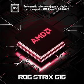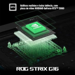 O ROG Strix G16 entrega potência de última geração para quem exige alto desempenho em jogos competitivos, criação de conteúdo e multitarefas pesadas. Equipado com AMD Ryzen 9 8940HX e NVIDIA GeForce RTX 5060, ele combina gráficos ultrarrealistas, baixíssima latência e sistema térmico avançado para manter a performance estável mesmo nas sessões mais intensas.
