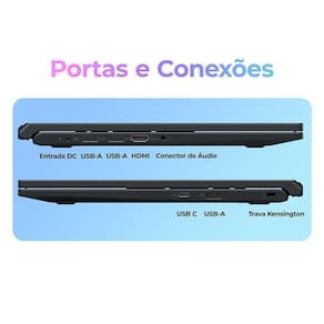 A conectividade também se destaca: são quatro portas USB (incluindo uma USB-C), Wi-Fi 5 com slot M.2 substituível, HDMI e entrada/saída de áudio,