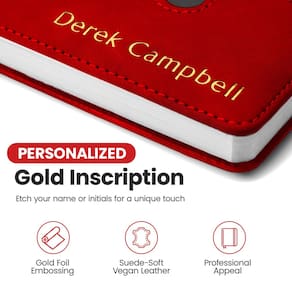 Apresentamos nosso caderno de couro personalizado, uma mistura deslumbrante de sofisticação, funcionalidade e personalização. Este diário de couro premium permite que você faça uma declaração ousada com seu nome elegantemente gravado na capa dura em folha metálica dourada. Com um simples clique, você tem o poder de personalizar seu caderno de trabalho, criando um diário verdadeiramente distinto e personalizado que reflete sua individualidade. Projetado para conveniência – este diário encadernado em couro apresenta um bolso cuidadosamente trabalhado e um design de trava segura. O design de bolso é perfeito para manter notas soltas, cartões de visita ou até mesmo itens essenciais como o seu telefone à mão. O cadeado garante que seus preciosos pensamentos e notas permaneçam protegidos. Nosso caderno A5 apresenta um acabamento luxuoso de camurça. A capa de couro vegano suave e flexível convida a ponta dos seus dedos a explorar sua textura macia, adicionando um toque de indulgência à sua experiência de escrita. É um diário de viagem que atrai homens e mulheres, exalando sofisticação e requinte em cada página. Abrace infinitas possibilidades com este versátil caderno forrado. Seja capturando seus pensamentos, esboçando suas ideias, anotando ou mantendo um diário pessoal, este caderno de reuniões se adapta sem esforço às suas necessidades criativas. É a companhia perfeita para escritores, artistas, executivos e profissionais que buscam se expressar com estilo. Você está procurando uma ideia de presente notável? Nosso diário de escrita é uma escolha perfeita. Combinando praticidade com elegância, é um presente atencioso para aniversários, aniversários ou qualquer ocasião especial. Seus entes queridos ficarão encantados com o toque personalizado. Entregue-se ao fascínio de nossos cadernos personalizáveis, onde o luxo encontra a expressão pessoal. Liberte sua criatividade em um caderno de capa dura que é exclusivamente seu. - Seu caderno personalizado: faça uma declaração com a personalização em relevo dourado para o seu nome, infundindo um ar de sofisticação neste diário exclusivo encadernado em couro. O caderno de viagem se torna uma tela de suas preferências, clique em "Personalizar agora" para começar. Faça uma declaração ousada e adicione um toque de elegância incomparável ao seu caderno hoje. - Design conveniente de bolso e trava: mantenha-se organizado em movimento com um bolso prático, perfeito para armazenar notas soltas, cartões de visita ou outros itens essenciais. Ele também vem com um cadeado para manter as páginas do diário de viagem seguras. - Couro vegano macio de camurça: mergulhe na sensação luxuosa deste diário para homens e mulheres, com um acabamento de camurça suave que oferece uma sensação tátil e sofisticada que eleva sua experiência de escrita. - Infinitas possibilidades: seja para diários, esboços, anotações ou um diário para escrever, este caderno versátil forrado A5 se adapta às suas necessidades criativas, tornando-o um presente perfeito para escritores, artistas, executivos e profissionais. - Presente memorável: Impressione seus entes queridos com um presente personalizado que combina praticidade e estilo. Este caderno de couro personalizado é um presente atencioso para aniversários, aniversários ou qualquer ocasião especial. Escolha entre 8 cores: azul, azul celeste, preto, azul tempestade, marrom, vermelho, cinza e marrom.