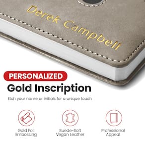Apresentamos nosso caderno de couro personalizado, uma mistura impressionante de sofisticação, funcionalidade e personalização. Este diário de couro premium permite que você faça uma declaração ousada com seu nome elegantemente gravado na capa dura em folha metálica dourada. Com um simples clique, você tem o poder de personalizar seu caderno de trabalho, elaborando um diário verdadeiramente distinto e personalizado que reflete sua individualidade. Projetado para conveniência - este diário encadernado em couro apresenta um bolso cuidadosamente trabalhado e um design de trava segura. O design de bolso é perfeito para manter notas soltas, cartões de visita ou até mesmo itens essenciais como o seu telefone à mão. A fechadura garante que seus preciosos pensamentos e notas permaneçam protegidos. Nosso caderno A5 apresenta um acabamento luxuoso semelhante a camurça. A capa de couro vegano suave e flexível convida seus dedos a explorar sua textura macia, adicionando um toque de indulgência à sua experiência de escrita. É um diário de viagem que atrai homens e mulheres, exalando sofisticação e requinte em cada página. Abrace infinitas possibilidades com este caderno forrado versátil. Seja capturando seus pensamentos, esboçando suas ideias, anotando ou mantendo um diário pessoal, este caderno de reuniões se adapta facilmente às suas necessidades criativas. É a companhia perfeita para escritores, artistas, executivos e profissionais que buscam se expressar com estilo. Você está procurando uma ideia de presente notável? Nosso diário de escrita é a escolha perfeita. Combinando praticidade com elegância, é um presente atencioso para aniversários, aniversários ou qualquer ocasião especial. Seus entes queridos ficarão cativados pelo toque personalizado. Entregue-se ao fascínio de nossos cadernos personalizáveis, onde o luxo encontra a expressão pessoal. Liberte sua criatividade em um caderno de capa dura que é exclusivamente seu. - Seu caderno personalizado: faça uma declaração com a personalização em relevo dourado para o seu nome, infundindo um ar de sofisticação neste diário exclusivo encadernado em couro. O caderno de viagem se torna uma tela de suas preferências, clique em "Personalizar agora" para começar. Faça uma declaração ousada e adicione um toque de elegância incomparável ao seu caderno hoje. - Design conveniente de bolso e trava: mantenha-se organizado em movimento com um bolso prático, perfeito para armazenar notas soltas, cartões de visita ou outros itens essenciais. Ele também vem com um cadeado para manter as páginas do diário de viagem seguras. - Couro vegano macio de camurça: mergulhe na sensação luxuosa deste diário para homens e mulheres, com um acabamento de camurça suave que oferece uma sensação tátil e sofisticada que eleva sua experiência de escrita. - Infinitas possibilidades: seja para diários, esboços, anotações ou um diário para escrever, este caderno versátil forrado A5 se adapta às suas necessidades criativas, tornando-o um presente perfeito para escritores, artistas, executivos e profissionais. - Presente memorável: Impressione seus entes queridos com um presente personalizado que combina praticidade e estilo. Este caderno de couro personalizado é um presente atencioso para aniversários, aniversários ou qualquer ocasião especial. Escolha entre 8 cores: azul, azul celeste, preto, azul tempestade, marrom, vermelho, cinza e marrom.