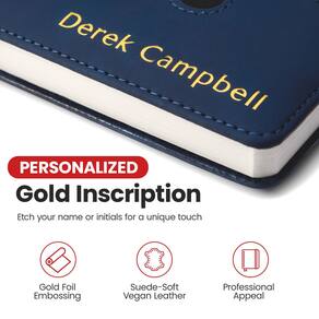Apresentamos nosso caderno de couro personalizado, uma mistura deslumbrante de sofisticação, funcionalidade e personalização. Este diário de couro premium permite que você faça uma declaração ousada com seu nome elegantemente gravado na capa dura em folha metálica dourada. Com um simples clique, você tem o poder de personalizar seu caderno de trabalho, criando um diário verdadeiramente distinto e personalizado que reflete sua individualidade. Projetado para conveniência – este diário encadernado em couro apresenta um bolso cuidadosamente trabalhado e um design de trava segura. O design de bolso é perfeito para manter notas soltas, cartões de visita ou até mesmo itens essenciais como o seu telefone à mão. O cadeado garante que seus preciosos pensamentos e notas permaneçam protegidos. Nosso caderno A5 apresenta um acabamento luxuoso de camurça. A capa de couro vegano suave e flexível convida a ponta dos seus dedos a explorar sua textura macia, adicionando um toque de indulgência à sua experiência de escrita. É um diário de viagem que atrai homens e mulheres, exalando sofisticação e requinte em cada página. Abrace infinitas possibilidades com este versátil caderno forrado. Seja capturando seus pensamentos, esboçando suas ideias, anotando ou mantendo um diário pessoal, este caderno de reuniões se adapta sem esforço às suas necessidades criativas. É a companhia perfeita para escritores, artistas, executivos e profissionais que buscam se expressar com estilo. Você está procurando uma ideia de presente notável? Nosso diário de escrita é uma escolha perfeita. Combinando praticidade com elegância, é um presente atencioso para aniversários, aniversários ou qualquer ocasião especial. Seus entes queridos ficarão encantados com o toque personalizado. Entregue-se ao fascínio de nossos cadernos personalizáveis, onde o luxo encontra a expressão pessoal. Liberte sua criatividade em um caderno de capa dura que é exclusivamente seu. - Seu caderno personalizado: faça uma declaração com a personalização em relevo dourado para o seu nome, infundindo um ar de sofisticação neste diário exclusivo encadernado em couro. O caderno de viagem se torna uma tela de suas preferências, clique em "Personalizar agora" para começar. Faça uma declaração ousada e adicione um toque de elegância incomparável ao seu caderno hoje. - Design conveniente de bolso e trava: mantenha-se organizado em movimento com um bolso prático, perfeito para armazenar notas soltas, cartões de visita ou outros itens essenciais. Ele também vem com um cadeado para manter as páginas do diário de viagem seguras. - Couro vegano macio de camurça: mergulhe na sensação luxuosa deste diário para homens e mulheres, com um acabamento de camurça suave que oferece uma sensação tátil e sofisticada que eleva sua experiência de escrita. - Infinitas possibilidades: seja para diários, esboços, anotações ou um diário para escrever, este caderno versátil forrado A5 se adapta às suas necessidades criativas, tornando-o um presente perfeito para escritores, artistas, executivos e profissionais. - Presente memorável: Impressione seus entes queridos com um presente personalizado que combina praticidade e estilo. Este caderno de couro personalizado é um presente atencioso para aniversários, aniversários ou qualquer ocasião especial. Escolha entre 8 cores: azul, azul celeste, preto, azul tempestade, marrom, vermelho, cinza e marrom.