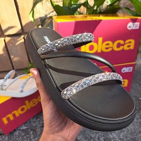 A Moleca lançou essa Flat lindíssima com as tiras brilhosas (Strass) Com Materiais Importados. Esse modelo agrega muita beleza em diversas produções. Leve e muito flexível essa Flat vai se tornar o seu novo xodozinho.