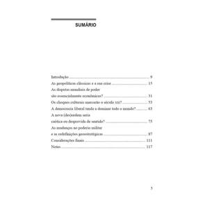 A problemática geopolítica não mais se identifica como "uma única disciplina", seja a Geografia, a Ciência Política ou a Estratégia Militar, e sim como "um campo de estudos". Nesta perspectiva, o livro comenta as novas geopolíticas que surgiram a partir do final dos anos 1980 e explica como se dará a disputa pela hegemonia mundial no século XXI. Novos atores são levados em consideração, desde as civilizações ou grandes culturas até as ONGs, perpassando as empresas multi ou transnacionais, as organizações internacionais e os "blocos" ou mercados regionais. Novos campos de luta são agora vistos como importantes para a compreensão das relações de poder no espaço mundial: ambientalistas, feministas, minorias étnicas, povos sem território reconhecido, populações excluídas. As transformações ocasionadas pela Terceira Revolução Industrial, a globalização capitalista e uma multipolaridade complexa são exploradas a partir do confronto das ideias de Huntington, Thurow, Kennedy, Brzezinski e vários outros. Marca: CONTEXTO UNIVERSITARIO