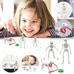 Novo esqueleto móvel estranho e engraçado modelo humano esqueleto brinquedo mini-boneca de corpo inteiro 3PCS Características: Corpo de plástico totalmente posable para criar o olhar perfeito bonito tolo ou assustador Mini figura, várias formas Pode se levantar Pode se mover, muito bonito A articulação é móvel, pode fazer qualquer ação Especificação: Cor: Branco Material: PVC Altura: Grande: 8,5 cm, Pequeno: 5,4 cm, Cachorro: 6x4cm Quantidade: 1Pc Nota: Devido à diferença entre monitores diferentes, a imagem pode não refletir a cor real do item. Lista de agradecimento: 1x brinquedo de caveira, conjunto de 3 peças