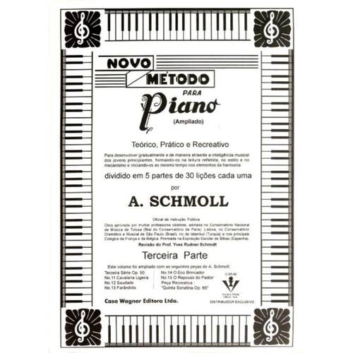 Esta terceira parte do tradicional método Schmoll para piano, constituído de 5 partes, comporta, além das 30 lições do método, as seguintes peças: Cavalaria ligeira, Saudade, Farândola, Eco brincador, O repouso do pastor e Quinta sonatina Opus 65. Marca: IRMAOS VITALE EDITORES