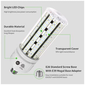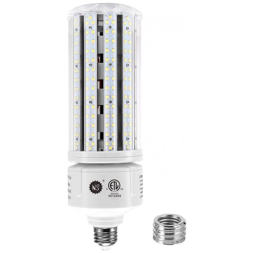 Lâmpada LED COB Corn NS 100W, 5000K, com 16000 lúmens, voltagem AC 110-277V, base E26/E39. Substitui lâmpadas tradicionais como Metal Halide, HID e CFL, ideal para iluminação comercial e industrial. Projetada para alta eficiência energética com iluminação branca neutra (5000K) que proporciona luz uniforme e intensa. Perfeita para uso em galpões, oficinas, estacionamentos e instalações de alta altura (high bay). Essa lâmpada tem driver embutido, dispersão total da luz em 360 graus e design resistente que não requer sistema de ventilação por ventoinha, garantindo baixo aquecimento e maior durabilidade. Compatível com bases E26 e E39, atende tensões amplas de 110 a 277V, tornando-a versátil para vários ambientes industriais e comerciais. Ideal para substituir lâmpadas de 250W a 400W com economia significativa de energia e manutenção reduzida.