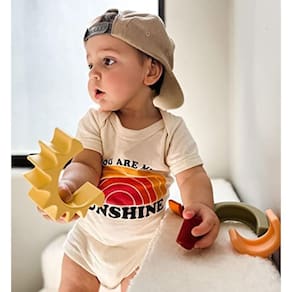 Aproveite ao máximo o tempo de brincadeira com o Sol de Empilhamento de Silicone da Nuby. Projetado para ajudar a incentivar o desenvolvimento cognitivo, o Silicone Stacking Sun ajuda a desenvolver as habilidades motoras finas das crianças, incluindo o desenvolvimento da coordenação olho-mão que eventualmente ajudará em tarefas futuras, como a autoalimentação. Com cores envolventes e peças de vários tamanhos, o bebê aprimorará as habilidades de reconhecimento de cores e sequenciamento de tamanho enquanto exercita sua criatividade. Enquanto os pequenos sentam e brincam, empilhar brinquedos também ajuda a construir a estabilidade do núcleo. Com a segurança das crianças em mente, o Nuby's Silicone Stacking Sun é feito de 100% silicone que é livre de BPA e seguro para a máquina de lavar louça, por isso a limpeza é fácil. Para se divertir ainda mais, o Silicone Stacking Sun da Nuby também pode ser na hora do banho!