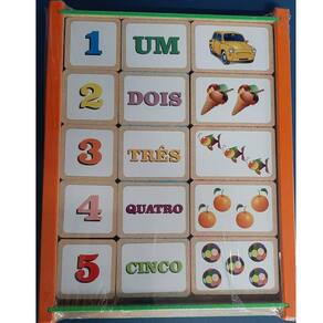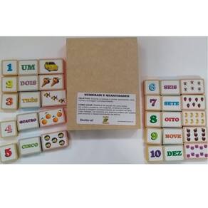 Numerais e quantidades Numerais e quantidades Jogo de peças em madeira para a criança aprender a associar os numerais com a escrita e as quantidades ilustradas.