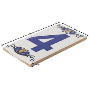 Número Residencial Cerâmico Gabriela 15cm Número N4 Material: Cerâmica Acabamento: Brilhante Altura: 15 cm Largura: 7 cm Espessura: 8 mm Peso: 20 g Garantia: 60 meses pelo fabricante A imagem do produto é ilustrativa e pode variar de tonalidade e cor de acordo com a configuração de cada monitor. Os objetos que compõem a foto ambientada não acompanham o produto. Fotos meramente ilustrativas.