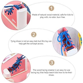 - O tênis de amarração de madeira é um brinquedo de amarração fácil de usar que ajuda a ensinar as crianças a amarrar seus sapatos.