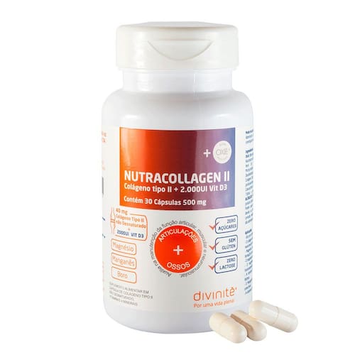 Nutracollagen II protege suas articulações com uma fórmula avançada de Colágeno Tipo II, vitaminas essenciais como D3 e C, além de antioxidantes como E, Selênio e Manganês. Cuide do seu bem-estar hoje para um futuro mais saudável.