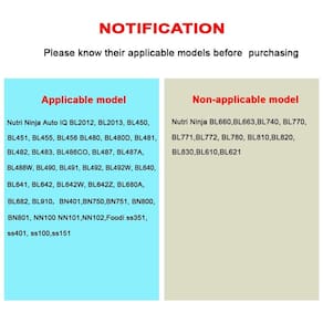 Modelos Aplicáveis: Compatível com os Sistemas de Cozinha Nutri Ninja Auto-iQ BL2012, BL2013, BL450, BL451, BL455, BL456 BL480, BL480D, BL481, BL482, BL483, BL486CO, BL487, BL487A, BL488W, BL490, BL491, BL492, BL492W, BL640, BL641, BL642, BL642W, BL642Z, BL680A, BL682, BL910, BN401, BN750, BN751, BN800, BN801, NN100, NN101, NN102, Foodi ss351, ss401, ss100, ss151.