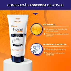 O Novo Nutriol Creme Nutritivo é um hidratante dermatológico de textura creme não pegajosa e de rápida absorção. Formulado com potentes ativos dermoenergizantes Esqualano Vegetal e Vitamina C para estimular a renovação celular, nutrir a pele por 48h, além de fortalecer e melhorar a resistência da barreira de proteção em 3 dias. Sua fórmula concentrada garante uma hidratação imediata e de longa duração, com uma sensação leve, não pegajosa, sendo rapidamente absorvida pela pele. Testado dermatologicamente e comprovado cientificamente, Nutriol Creme proporciona hidratação por 48Hrs e fortalece a barreira de proteção da pele em 3 dias. Hipoalergênico, não comedogênico, sem parabenos, corantes e silicones. Fórmula vegana. Benefícios: Fortalece a barreira da pele em 3 dias; +74% de hidratação imediata após o 1º uso; Nutre intensamente por 48h; Textura creme não pegajosa de rápida absorção; 99% de ingredientes naturais; Cruelty free; Sem silicone e sem parabenos Conheça a eficácia do poderoso complexo de ativos de Nutriol Intensivo: - Esqualano 100% vegetal: nutre, hidrata e protege a barreira de proteção da pele. - Vitamina c: ação antioxidante, protege a pele das agressões diárias, prevenindo danos oxidativos. Indicação: Hidratação diária todos os tipos de pele especialmente as secas, muito secas ou extremamente secas. Sobre a linha: A versão 200g é ótima para ser Utilizado em diversos momentos do dia, já a versão de 400g tem ótimo custo benefício e é ideal para ter sempre em casa para sua rotina de hidratação diária. ITENS INCLUSOS:1 Creme Hidratante Intensivo Corporal Nutriol 200 g