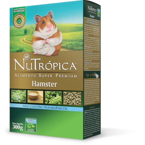NuTrópica® Hamster é um alimento extrusado completo, cientificamente formulado e especialmente desenvolvido para hamsters e pequenos roedores. Cada embalagem de NuTrópica® Hamster contém uma combinação exclusiva das mais nobres e saborosas matérias-primas não transgênicas, preparadas sob rigoroso controle de qualidade e utiliza as melhores técnicas em produção de alimentos. São mais de 30 ingredientes diferentes, incluindo alfafa e vários tipos de grãos integrais como aveia, trigo, linhaça e ervilha, que juntos proporcionam os níveis ideais dos nutrientes necessários para a perfeita saúde, bem-estar e vitalidade do seu hamster. Por ser um alimento não transgênico, NuTrópica® Hamster não utiliza milho nem soja em sua formulação.