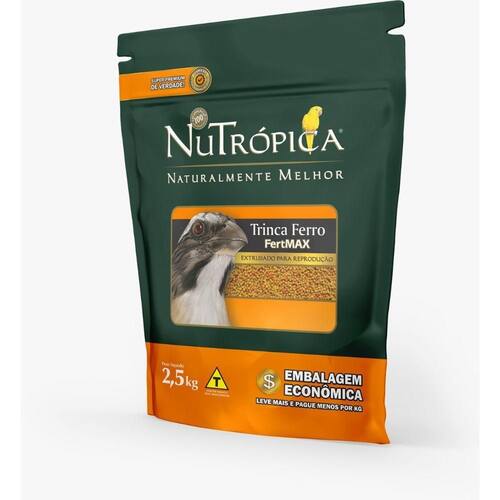 Nutrópica Trinca Ferro FERTMax é um alimento extrusado completo, cientificamente formulado e especialmente desenvolvido para os períodos de reprodução e crescimento dos filhotes de Trinca Ferro. Sua fórmula exclusiva contém as quantidades ideais de todos os nutrientes necessários para a preparação do casal para o período reprodutivo e para o ótimo desenvolvimento dos filhotes. Recomendação de Consumo: O uso de NuTrópica Trinca Ferro FERTMax deve ser iniciado 6 semanas antes do período usual de postura e se estender até o final do período reprodutivo do casal. Para atender as exigências de energia, proteínas, vitaminas e minerais específicas dos filhotes em crescimento, NuTrópica Trinca Ferro FERTMax deve ser utilizado como fonte principal de alimento até os 6 meses de idade, garantindo assim um desenvolvimento perfeito. Nutrópica Trinca Ferro FERTMax é um alimento completo que atende a 100% das necessidades nutricionais de sua ave. Não recomendamos a adição de qualquer suplemento nutricional. As aves alimentam-se várias vezes ao dia, por isso NuTrópica Trinca Ferro FERTMax deve sempre estar à disposição de sua ave. Frutas, verduras e legumes frescos podem ser oferecidos, desde que não ultrapassem 20% do peso total do alimento. Água limpa e fresca deve estar sempre disponível. O veterinário deve ser visitado regularmente. Veja porque NuTrópica Trinca Ferro FERTMax é o melhor alimento para o período reprodutivo: - Níveis ótimos de nutrientes Nutrópica Trinca Ferro FERTMax incorpora os mais modernos conceitos e pesquisas em nutrição, e contém níveis ótimos de proteína, cálcio e vitaminas necessários para a preparação das aves para o período reprodutivo. - Ômega 3 e Ômega 6 Nutrópica Trinca Ferro FERTMax contém os níveis ideais dos ácidos graxos Ômega 3 e Ômega 6, além da correta inclusão de prebióticos e probióticos. - Maior Rendimento e Praticidade - O consumo de alimentos extrusados promove maior rendimento e facilita o manejo. Além da sujeira, as cascas representam um grande desperdício, chegando a ultrapassar 30% do peso das sementes. - 100% Completo - Cada partícula de NuTrópica Trinca Ferro FERTMax proporciona à sua ave a combinação ideal de energia, proteínas, vitaminas e minerais. Sua ave não precisará de nenhum outro alimento. Níveis de : Umidade máx. ................................................12,00% 120 g/kg Proteína bruta mín. ..........................................18,00% 180 g/kg Extrato Etéreo mín. ..........................................7,00% 70 g/kg Matéria fibrosa máx. .........................................8,00% 80 g/kg Matéria mineral máx. ........................................5,00% 50 g/kg Cálcio máx. .....................................................1,30% 13.000mg/kg Cálcio mín. ......................................................0,50% 5.000mg/kg Fósforo mín. ....................................................0,50% 5.000mg/kg Sódio mín. .......................................................0,10% 1.000mg/kg Extrato de Yucca schidigera mín .........................0,025% 250 mg/kg Frutoligossacarídeos mín. ..................................0,10% 1.000 mg/kg Mananoligossacarídeos mín. ..............................0,10% 1.000mg/kg Bacillus subtilis mín. .........................................6,4 x 108 UFC/kg Bacillus licheniformis mín. .................................6,4 x 108 UFC/kg