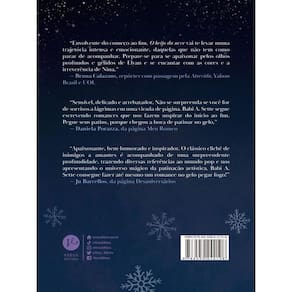 Nina e Elyan são patinadores mas as semelhanças terminam por aí. Ela irradia alegria, enquanto ele tem um coração de gelo... Mas a química entre os dois é capaz de derreter tudo pelo caminho. O beijo da neve é mais um emocionante romance de Babi A. Sette, autora de Senhorita Aurora. Nina é uma jovem patinadora que ficou afastada das pistas por questões familiares. Agora, ela se vê diante do desafio de retornar às competições, dividindo seu tempo entre treinos intensos e trabalhos que paguem as contas. As coisas ficam ainda mais complicadas quando o patinador olímpico Elyan Kane — um cara frio e intenso, que desapareceu por cinco anos, após a morte trágica de sua parceira no esporte —, surge com uma proposta irrecusável para Nina. O que Elyan não sabe — e, se depender de Nina e dos deuses hindus e irlandeses de suas avós, nunca saberá — é que na adolescência ela nutria uma paixão platônica por ele. E que o primeiro encontro entre os dois resultou em uma enorme desilusão para a garota. Apesar das emoções conflitantes, Nina não pode perder a oportunidade de perseguir seus sonhos na patinação, mesmo que isso signifique lidar com a presença irritante de Elyan e com aqueles olhares longos e penetrantes, que vêm fazendo uma bagunça em seu coração. Entre as fascinantes auroras boreais do Canadá, um castelo com fama de mal-assombrado e as pistas de patinação, eles enfrentarão obstáculos, medos e sentimentos contraditórios. E tentarão provar que a paixão — pela patinação e talvez por alguém que está bem ao lado — pode superar qualquer adversidade. “Envolvente do começo ao fim, O beijo da neve vai te levar numa trajetória intensa e emocionante, daquelas que não tem como parar de acompanhar. (...)” — Bruna Calazans, repórter com passagem pela Atrevida, Yahoo Brasil e UOL “Sensível, delicado e arrebatador. Não se surpreenda se você for de sorrisos a lágrimas em uma virada de página. Babi A. Sette segue escrevendo romances que nos fazem suspirar do início ao fim. (...)” — Daniela Porazza, da página Meu Romeo “O clássico clichê de inimigos a amantes é acompanhado de uma surpreendente profundidade, trazendo diversas referências ao mundo pop e nos apresentando o universo mágico da patinação artística. Elyan e Nina vão te deixar com o coração quentinho!” — Ju Barcellos, da página Desaniversários