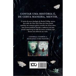 Sonhos enigmáticos, magia sombria e uma jornada perigosa Da autora best-seller Rachel Gillig, de Uma janela sombria e Duas coroas retorcidas Durante nove anos, Sybil Delling serviu como Divinadora na catedral de Traum, recebendo em sonhos as visões dos Agouros — seres sobrenaturais que a tornam capaz de prever tragédias antes que aconteçam. Mas quando as outras Divinadoras começam a desaparecer, Sybil é forçada a abandonar os muros sagrados e a confiar no improvável: Rodrick, um cavaleiro herege, de olhar sombrio e perigosamente charmoso. Juntos, eles embarcam em uma jornada por um mundo repleto de magia e segredos enterrados por deuses silenciosos. E quanto mais Sybil se aproxima da verdade, mais percebe que talvez nem mesmo os seus sonhos possam salvá-la. O cavaleiro e a mariposa é o início da nova duologia de fantasia gótica de Rachel Gillig. Uma história envolvente que mistura mistério, romance, magia e segredos divinos em uma jornada eletrizante e perigosa.