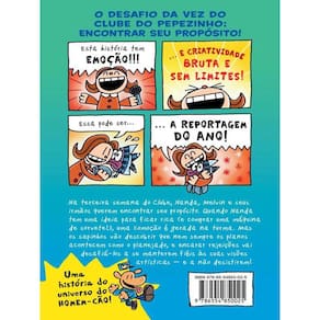 Do mesmo universo da série Homem-Cão, o terceiro volume do Clube do Pepezinho traz mais histórias em quadrinhos divertidas e muitas reflexões sobre as dificuldades que enfrentamos ao ouvir um “não”. O Clube de Quadrinhos do Pepezinho está em sua terceira semana, e Nanda, Melvin e seus irmãos estão tentando encontrar seu propósito. Quando Nanda tem uma ideia para ficar rica super-rápido (e comprar uma máquina de sorvete para todo mundo!), uma comoção enorme é gerada na turma. Mas os sapinhos vão descobrir que nem sempre os planos acontecem como o planejado, e encarar algumas rejeições vai desafiá-los a se manterem fiéis a suas visões artísticas — e a não desistirem do clube! Para abalar ainda mais o clima entre Flippy e os filhos, uma visita surpresa aparece com muitas provocações… Será que o clube de quadrinhos vai sobreviver a toda essa confusão? Explorando diversas técnicas de ilustração e criação narrativa, como lápis de cor, modelagem, fotografia, colagem, entre tantas outras, Dav Pilkey convida seus leitores a experimentar a arte de contar e desenhar suas próprias histórias por meio do humor, trabalho em grupo, empatia e independência. Uma leitura divertida e colorida para todos que são apaixonados por histórias em quadrinhos! Indicado para leitores a partir dos 6 anos.