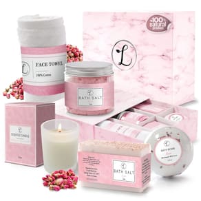 - Conjunto de presente de banho. O kit de spa de luxo em casa inclui: bomba de banho, sal de banho, sabonete e pano de rosto. O que lhe dará a verdadeira experiência de spa no conforto da sua casa.