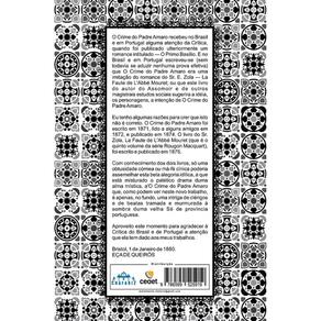 Com a morte do pároco da cidade de Leiria, o padre Amaro é designado para o cargo na igreja local e instala-se na casa de S. Joaneira, uma assídua religiosa. Amaro, se encanta com Amélia, filha da hospedeira, e desperta ciúmes no pretendente da jovem. A paixão cresce no antro eclesiástico de Leiria e o padre amaldiçoa o sacerdócio por não permitir que realize os seus desejos. O Crime do Padre Amaro recebeu no Brasil e em Portugal alguma atenção da Crítica, quando foi publicado ulteriormente umromance intitulado O Primo Basílio. E no Brasil e em Portugal escreveu-se (sem todavia se aduzir nenhuma prova efetiva) que O Crime do Padre Amaro era uma imitação do romance do Sr. E. Zola La Faute de L'Abbé Mouret; ou que este livro do autor do Assomoir e de outros magistrais estudos sociais sugerira a idéia, os personagens, a intenção de O Crime do Padre Amaro. Marca: Não Informado