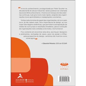 Este não é apenas um livro, mas um handbook, uma roda de conversas e um conjunto de estudos de caso que oferecem uma visão ampla e sofisticada do que significa "fazer design". É um recurso valioso para profissionais, gestores e curiosos interessados em compreender o papel do design na construção de empresas bem-sucedidas no mundo atual.  Ele aborda duas faces complementares de Design-Driven que contribuem com as organizações: por um lado a adoção de práticas, técnicas e métodos que têm origem no design, e que fortalecem a colaboração dentro das organizações,  aumentando o potencial inovador. Por outro, a construção de estratégias e táticas do dia a dia partindo de pessoas que têm o modo de pensar do design, tecendo, junto com as pessoas envolvidas de áreas diversas da organização, uma trama de mudanças relevantes e inovadoras em qualquer empresa. O livro conta com a contribuição de mais de 30 pessoas: Amanda Lopes, Ariel Rosa, Carol Zatorre, Djafran Ático, Erika Campos, Eduardo Peixoto, Evandro Leão, Gabi Boeira, Gabi Santos, Gabi Araújo, Giordano Cabral, Giulia Barros, Gustavo Rodrigues, Haidee Lima, Helda Barros, Karina Monteiro, Lívia Pastichi, Luci Pena, Lu De Mari, h.d. Mabuse, Maíra Gouveia, Manuel Alves, Matheus Araújo, Matheus Vale, Milena Leimig, Paula Marques, Quihoma Isaac, Renata Sellaro, Rocky Melo, Ronaldo Buarque, Thayssa Lacerda, Welton Santos, Willian Grillo e Yvanna Alencastro.