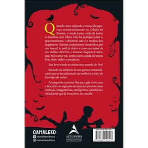 Quando uma segunda criança desaparece misteriosamente na cidade de Boston, o medo toma conta de todas as famílias com filhos. Não há qualquer pista e, aparentemente, o dinheiro não é o motivo dos sequestros. Seriam assassinatos cometidos por um louco? A polícia deixa o caso nas mãos de seu melhor detetive, o famoso Auguste Dupin, que, mais uma vez, conta com a ajuda do jovem Poe, observador e perspicaz. Seja bem-vindo ao misterioso mundo de Poe! Baseado na infância de um garoto extraordinário que se transformará no melhor escritor de histórias de terror. Acompanhe o jovem Poe em cada novo caso e descubra os segredos de uma das pessoas mais curiosas, imaginativas, inteligentes, analíticas e visionárias que já existiram no mundo. Marca: Não Informado