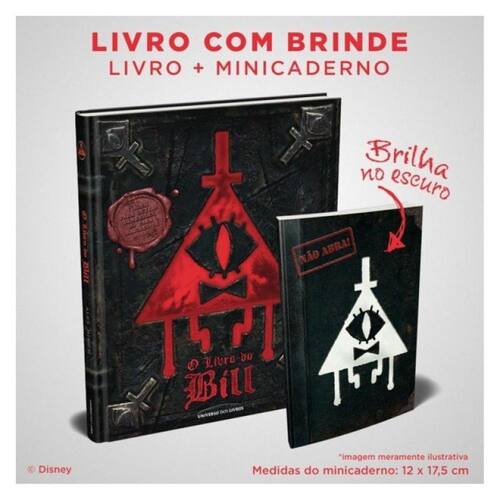 Acompanha caderneta de anotações, que brilha no escuro!!! Você sentiu falta dele? Admita, você sentiu falta dele. Alex Hirsch, autor best-seller do The New York Times , ressuscita este infame vilão e convida os fãs a conhecerem a perspectiva de Bill Cipher sobre o universo de Gravity Falls. O demônio que aterrorizou Gravity Falls voltou do além para finalmente contar seu lado da história em um novo livro escrito por ninguém menos do que o próprio Bill Cipher. Aqui, ele revela sua bizarra origem, seus efeitos sinistros sobre a história humana, os segredos mais constrangedores da família Pines e um guia com o passo a passo de como conquistar o mundo. Esta obra caótica e lindamente ilustrada contém enigmas atordoantes, cifras imbatíveis, páginas perdidas do Diário 3, maneiras para enganar a morte, além do sentido da vida e um capítulo inteiro sobre Canudinhos Malucos. E o mais importante: este livro é amaldiçoado. Muitos acreditam que este livro é perigoso demais para cair em mãos humanas. Mas, se não resistir, tenha cuidado. Caso faça um acordo com Bill, esse acordo não poderá ser desfeito com facilidade… Leia por sua própria conta e risco! IMPORTANTE: NÃO RECOMENDADO PARA MENORES DE 18 ANOS. Sobre o autor Alex Hirsch é escritor, animador, dublador e diretor. Ele é mais conhecido por criar Gravity Falls para o canal Disney XD. Ele cresceu em Piedmont, Califórnia, e se formou em Animação de Personagens no Instituto de Artes da Califórnia. Ele atualmente mora em Los Angeles e trabalha no desenvolvimento de projetos para o cinema e televisão. Apesar dos rumores, ele NÃO foi possuído por um demônio enquanto escrevia este livro. Repetindo: NÃO ESTÁ POSSUÍDO POR UM DEMÔNIO. Elogios “Eu achava que gostava de coisas estranhas, mas eu estava errado. Este livro foi estranho demais até para mim. Sinto náusea só de pensar na horripilante psicose contida aí dentro. Vou mudar meu nome para ‘Normal Al’ e jogar fora todas as minhas camisas havaianas. Evite este livro a qualquer custo!” – “Weird Al” Yankovic, músico e humorista famoso por suas paródias sobre cultura pop “Encontrei este livro arcaico em um corredor cheio de mofo na mais amaldiçoada das bibliotecas. Visitas noturnas feitas por espíritos malignos começaram quase imediatamente. Infectou minha mente e meus sonhos, e vai destruir a sua sanidade. Por tudo que é bom e sagrado, fique longe disso; faça o que fizer, não leia este livro.” – Guillermo del Toro, cineasta vencedor do Oscar “Olha, odeio discordar do Guillermo e do Normal Al, mas eu adoro esta coisa! Desde que a li, fico ouvindo gritos no meu cérebro que não param! Vou comprar um exemplar para todo mundo que conheço! Nós amamos o Bill! Nós amamos o Bill! Nós amamos o Bill!” – Charlie Day, ator de It’s Always Sunny in Philadelphia Leia também: O diário perdido de Gravity Falls , Alex Hirsch Gravity Falls: lendas perdidas , Alex Hirsch Sobre Disney Consumer Products, Games and Publishing Disney Consumer Products, Games and Publishing (CPGP) traz a magia das marcas e franquias da The Walt Disney Company – incluindo Disney, Pixar, Marvel, Star Wars, National Geographic e mais – no cotidiano de famílias e fãs de todo o mundo por meio de produtos e experiências em mais de 100 categorias de varejo, de brinquedos e camisetas a aplicativos, livros, videogames e muito mais. Uma divisão do segmento de Parques, Experiências e Produtos da Disney, as operações globais da CPGP incluem: o maior negócio de licenciamento do mundo, uma das maiores marcas de publicações infantis, um dos principais licenciadores de jogos interativos entre plataformas, Store in Stores por toda a região, e o e-shop no disneylatino . com/ shop e disney. Com .br/shop (disponível no Brasil, Colômbia e México).