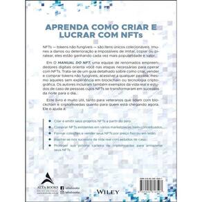 APRENDA COMO CRIAR E LUCRAR COM NFTs NFTs — tokens não fungíveis — são itens únicos colecionáveis. Imunes a danos ou deterioração e impossíveis de imitar, copiar ou piratear, eles estão ganhando cada vez mais popularidade e valor. Em O MANUAL DO NFT, uma equipe de renomados empreendedores digitais orienta você nas etapas necessárias para operar com NFTs. Trata-se de um guia detalhado sobre como criar, vender e comprar tokens não fungíveis, acessível a qualquer pessoa, mesmo aqueles sem experiência em blockchain ou tecnologia criptográfica. Os autores incluíram também exemplos da vida real e estudos de caso de pessoas cujos NFTs se transformaram em sucessos da noite para o dia. Este livro é muito útil, tanto para veteranos que lidam com blockchain e criptomoedas quanto para quem está chegando agora. Ele o ajuda a: Criar e emitir seus próprios NFTs a partir do zero. Comprar NFTs existentes em vários marketplaces bem-conceituados. Formar coleções e vender seus NFTs por preço fixo ou em leilão. Inspirar-se nos sucessos da vida real com estudos de caso. Proteger sua própria carteira de criptomoedas para armazenar seus NFTs. Ean: 9788550818597