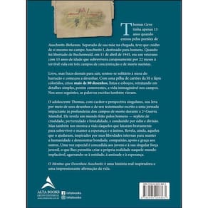 Thomas Geve tinha apenas 13 anos quando entrou pelos portões de Auschwitz-Birkenau. Separado de sua mãe na chegada, teve que cuidar de si mesmo no campo Auschwitz I, destinado para homens. Quando foi libertado de Buchenwald, em 11 de abril de 1945, era um veterano com 15 anos de idade que sobrevivera corajosamente por 22 meses à terrível vida em três campos de concentração e de morte nazistas. Livre, mas fraco demais para sair, sentou-se solitário à mesa do barracão e começou a desenhar. Com uma pilha de cartões da SS e lápis coloridos, criou mais de 80 desenhos, listas e esboços, retratando em detalhes simples, porém comoventes, a vida inimaginável nos campos. Nos anos seguintes, as palavras escritas também vieram. O adolescente Thomas, com caráter e perspectiva singulares, nos leva por meio de seus desenhos e de seu testemunho escrito a uma jornada impactante às profundezas dos campos de morte durante a 2ª Guerra Mundial. Ele revela um mundo feito pelos homens — repleto de crueldade, perversidade e brutalidade, e conduzido por ódio e divisão. Mas também nos mostra a vida daqueles que lutaram bravamente para sobreviver e manter a esperança e o ânimo. Revela, ainda, aqueles que o ajudaram, inspirados por suas liberdades internas para manter a humanidade e demonstrar bondade, compaixão, apoio e graça aos outros. Uma voz especial é concedida aos jovens e à sua singular força juvenil, o que lhes permitiu criar a própria realidade naquele mundo implacável, agarrando-se à unidade, à amizade e à esperança. O Menino que Desenhou Auschwitz é uma história real inspiradora e uma impressionante afirmação da vida.