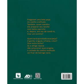 "Um mistério invadiu a mata: as cenouras do coelho sumiram! Assustado, o coelho pediu ajuda à raposa, famosa por resolver todos os casos suspeitos. Começou, então, a investigação, e muitos bichos foram interrogados. Cada um contou o que sabia: o gorila, a águia, a hiena, o boi, o urso, a formiga, o burro, o pinguim e até o espantalho, que nem bicho é. Qual será a solução desse enigma?