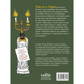 Marco e Maia são jovens detetives que trabalham desvendando os casos misteriosos da pequena cidade de Valleby. Nas férias de inverno, Marco e Maia passam o dia lendo romances policiais. Os dois amigos aproveitam o tempo livre para aprender mais sobre o comportamento dos criminosos. Interessados em casos de mistério, eles resolvem montar seu primeiro negócio: a Agência de detetives Marco & Maia. Agora o trabalho dessa dupla vai ajudar nas investigações dos crimes e acontecimentos estranhos da pequena cidade de Valleby, na Suécia. Desta vez, os convidados dessa pacata cidade são convidados pelo barão para uma deliciosa degustação de chocolates finos em seu luxuoso castelo. Tudo parece correr bem até uma coisa deixa Marco e Maia muito curiosos e eles decidem investigar. Ean: 9786555961713