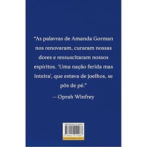 Amanda Gorman levou uma mensagem de verdade e esperança a milhões de pessoas e suscitou uma onda de interesse por sua poesia, publicada pela primeira vez no Brasil Em janeiro de 2021, com apenas 22 anos, Amanda Gorman declamou um poema na cerimônia de posse do presidente estadunidense, Joe Biden. O texto, intitulado “O monte que escalamos”, se destinava aos Estados Unidos, mas seu chamado esperançoso sensibilizou o mundo todo. Esta edição especial eterniza o poema e nos oferece coragem, conforto e a inspiração necessária para mudar o mundo. Com prefácio elogioso de Oprah Winfrey, este livro celebra a promessa de um futuro melhor e reafirma o poder da poesia.