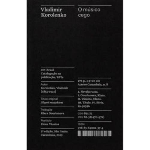 Em O músico cego, sua obra mais conhecida, Vladimir Korolenko (1853 1921) conta a história de Piótr Popélski, garoto que nasce sem enxergar. A novela mostra a trajetória do menino, suas sensações e reações, entre a luz e a escuridão, e sua sensibilidade e aptidão em relação à música. A narrativa, delicada, foi assim avaliada pelo crítico russo Alexandre Skabitchevsky: O músico cego é a última palavra da perfeição, uma das obras mais admiráveis com as quais o mundo literário já pôde contar. Impossível pensar em um tema tão simples, com menos artifícios, e ao mesmo tempo uma análise psicológica mais profunda . Korolenko, considerado por Liev Tolstói um dos principais contistas da literatura de língua russa e comparado a Charles Dickens pelo crítico Otto Maria Carpeaux, nasceu no sudeste do Império Russo, em Jitómir, atual Ucrânia uma região multicultural, que passou pelo domínio russo, polonês e ucraniano, onde ele situa essas duas novelas. Com 20 anos, foi estudar em Moscou, onde se envolveu com movimentos estudantis o que lhe rendeu uma deportação para a Sibéria. Foi lá, durante o exílio, que começou a escrever. Preocupado em denunciar injustiças sociais e sofrimentos humanos, o escritor é considerado um precursor da literatura proletária. Chamado por seus contemporâneos de consciência de nossa época , obteve tanto a aceitação popular como a dos meios intelectuais. O design da coleção é assinado pelo Bloco Gráfico, constituído por Gabriela Castro, Gustavo Marchetti e Paulo André Chagas. Os livros têm acabamento em brochura, formato 13x20 cm, e utilizam papéis especiais e certificados: o sueco Munken Print Cream 80 g/m2 no miolo e o escocês Pop Set Black 320 g/m2 na capa. Outro detalhe do volume é a inclusão de um fitilho bordado com o logo do Acervo.