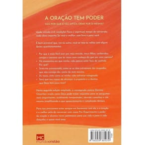 A ORAÇÃO TEM PODER Mas por que é tão difícil orar por si mesma? Idade, estado civil, condições física e espiritual, tempo de conversão, nada disso importa. Se você é mulher, este livro é para você. É bem provável que, vez ou outra, você se veja às voltas com algum destes questionamentos: Por que é mais fácil orar por meu marido, meus filhos, conhecidos, amigos e pessoas que às vezes nem conheço do que por mim mesma? Há momentos em que minha vida parece estar fora de controle. Por quê? Sinto-me pressionada, como se os dias estivessem tão ocupados que não consigo dar conta de mim mesma. Às vezes, sinto como se minha vida estivesse estagnada. Será que sou capaz de alcançar o propósito e o destino que Deus tem para mim? Nesta segunda edição ampliada, a consagrada autora Stormie Omartian revela como Deus pode trazer respostas para as perguntas mais angustiantes, acalmando tempestades, abrindo caminhos e até mesmo simplificando o que aparentemente é complicado demais. Para isso precisamos estar sempre em harmonia com ele, e a oração é o melhor jeito de conversar com nosso Pai. Experimente o poder da oração e alcance novos patamares para sua vida e para a vida daqueles a quem você ama.