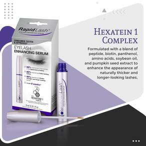 — COMPLEXO HEXATEÍNA 1: Nosso inovador COMPLEXO DE HEXATEÍNA 1, composto por seis ingredientes altamente eficazes, foi projetado especificamente para condicionar, hidratar e fortalecer para melhorar a aparência geral de cílios mais bonitos.