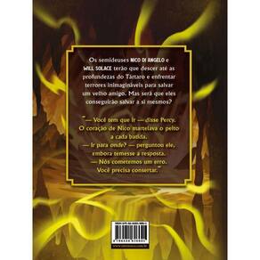 Muito aguardado pelos fãs, livro do universo de Percy Jackson traz Nico di Angelo e Will Solace em uma aventura sombria e emocionante pelo Mundo Inferior Nico di Angelo não tem uma vida lá muito fácil. Além de ser filho de Hades, o deus mais tenebroso do Olimpo, o jovem perdeu a mãe e a irmã, passou por poucas e boas no Acampamento Meio-Sangue e teve que se despedir de um dos melhores amigos. Ainda que nem tudo sejam flores, há uma luz no fim do túnel: Will Solace, seu namorado e filho de Apolo. Juntos, os dois semideuses conseguem enfrentar tudo e todos. Pelo menos até agora… Das profundezas do Tártaro, o nível mais macabro do Mundo Inferior, uma voz solitária e atormentada implora pela ajuda de Nico, e o jovem tem uma suspeita de quem seja: um ex-titã chamado Bob que Percy e Annabeth tiveram que abandonar ao escaparem do lugar. Os sonhos cada vez mais frequentes de Nico e uma profecia macabra confirmam que Bob ainda vai ser fonte de muitos problemas, e logo o semideus se lança em uma missão arriscada e assustadora. É claro que, sendo um ótimo namorado, Will decide acompanhar o amado. Mas como um ser feito literalmente de luz vai sobreviver em meio às trevas do Tártaro? E ao que a profecia se referia quando disse que Nico terá que deixar para trás “algo de igual valor”? Agora, o filho de Hades precisará confrontar verdades difíceis em seu relacionamento com Will enquanto luta contra demônios poderosos. Inclusive os que vivem dentro dele. Nessa nova aventura do universo de Percy Jackson, o autor best-seller Rick Riordan se une a Mark Oshiro em uma história inesquecível e emocionante, um lembrete de que o amor é o verdadeiro triunfo da vida.