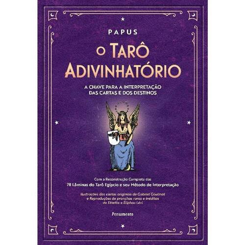 O tarô adivinhatório com a reconstrução completa das 78 lâminas do tarô egípcio e seu método de interpretaçãoLançado de forma pioneira em 1920, o tarô adivinhatório acumula, há mais de um século, mais de 700 mil exemplares vendidos. Trata se da grande referência em cartomancia popular editada no país, responsável pela popularização desse tipo de oráculo no brasil. Agora, a pensamento traz esta edição totalmente renovada desde os textos,caixa ecartas contendo texto integral de papus, lançado na frança originalmente em 1909, com estudos de etteilla, éliphas lévi e jean gaston bourgeat; contribuições importantes para o leitor brasileiro feitas por antonio olívio rodrigues, fundador da pensamento e primeiro astrólogo do brasil; prefácio dos especialistas leo chioda café tarot e constantino k. Riemma clube do tarô , posfácio de leo chioda e a apresentação do editor adilson ramachandra. As 78 cartas que acompanham o livro trazem a restauração completa do tarô egípcio e seu método de interpretação..Mais detalhes:Subtitulo: o tarô adivinhatório com a reconstrução completa das 78 lâminas do tarô egípcio e seu método de interpretaçãoPaginas: 256Tipo de capa: capa duraIsbn: 9788531522178Isbn10: 853152217xData publicação: 05/10/2022Idioma: indefinidoEdição: 2Condição do item: novoTipo de narração: 05/10/2022
