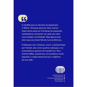 O Último Teorema de Fermat       é uma história real de obsessões, rivalidades, premiações e tragédias em meio ao desafio de resolver o problema matemático mais notório do mundo — até a sua surpreendente resolução.            Quando o polímata Pierre de Fermat, pai da teoria dos números moderna, faleceu em 1637, levou consigo a solução para um último problema matemático. Ele deixou uma nota no oitavo problema de Aritmética, de Diofante: “Eu tenho uma demonstração realmente maravilhosa para esta proposição, mas esta margem é muito estreita para contê-la.” Com essa breve afirmação, lançou um dos maiores desafios da história, conhecido como o Último Teorema de Fermat, que intrigaria por séculos estudiosos como Leonhard Euler e Sophie Germain.    Quando Andrew Wiles, então com 10 anos, visitou a biblioteca de sua cidade e ficou diante do enigma pela primeira vez, sentiu-se intrigado e quis resolvê-lo. Em 1993, após décadas de dedicação, já professor de Princeton, anunciou uma demonstração, causando alvoroço no mundo da matemática. No entanto, uma falha foi identificada, e Wiles precisou trabalhar por mais de um ano — mesmo já tendo passado sete em completo isolamento. Com foco e persistência, ele decifrou o problema de 358 anos, tornando-se manchete em inúmeros jornais, além de receber o Prêmio Wolfskehl, criado para condecorar quem solucionasse a questão.       O Último Teorema de Fermat é uma história extraordinária de dedicação humana, obsessão e genialidade intelectual. Em uma combinação de narrativa envolvente com um relato fascinante sobre os bastidores acadêmicos da solução de um problema que impulsionou a evolução da matemática através dos séculos, a obra consolidou-se como um clássico da divulgação científica.    “À medida que os séculos se passavam, o Último Teorema pareceu ficar menos importante para as fronteiras da pesquisa matemática, tornando-se cada vez mais uma simples curiosidade. Mas agora está claro que sua importância nunca diminuiu.    Problemas com números, como o apresentado por Fermat, são como quebra-cabeças, e os matemáticos gostam de resolvê-los. Para Andrew Wiles, aquele era um problema muito especial, e nada menos do que o objetivo de sua vida.”