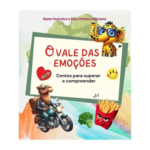 Escrito por Nane VoaLetra e ilustrado por seu filho, Davi, “O Vale das Emoções” é um desses livros que, quando terminamos de ler, seguramos bem forte junto ao peito. Nessa aventura lúdica, animais, alimentos e crianças vivenciam experiências que abordam temas como bullying, a separação dos pais, inseguranças, respeito às diferenças e perdas de forma muito, muito sensível!