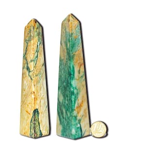 Obelisco Jadeita Verde natural de garimpo. O obelisco de Jadeita Verde pode ser utilizado como um objeto decorativo elegante e sofisticado.