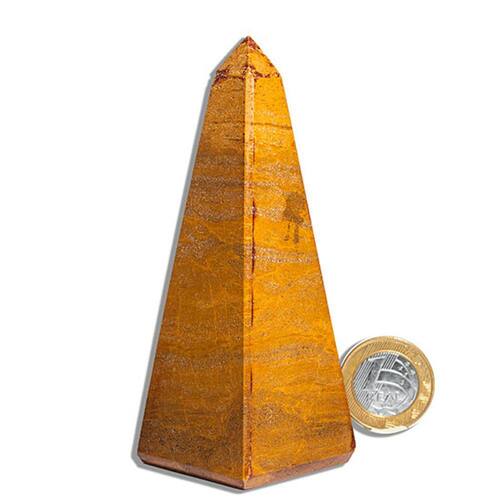 Obelisco Jaspe Amarelo Natural de Garimpo com Lapidação Manual em Forma de Obelisco Especificações da Pedra: Nome da Pedra: Jaspe Amarela Cor da Pedra: Marrom Corte da Pedra: Torre de Obelisco Piramidal Claridade da Pedra: Denso e Sem Transparência Medida da Pedra: 11 a 12 Centímetros aproximado Peso Total da Pedra: 249 Gramas aproximado Origem: Brasil Nota: Quaisquer variações podem ser atribuídas à luz do estúdio. Por ser pedra natural, podem apresentar variações em suas tonalidades e grafismos. Há também a possibilidade de ocorrerem pequenas inclusões que irão se confundir a fissuras, mas que são normais de minerais autênticos de garimpo Hidratação com óleo mineral. Descubra a Magia do Jaspe Amarela Dê as boas-vindas ao Jaspe Amarela, uma pedra mágica que nos presenteia com a beleza da natureza e uma série de benefícios surpreendentes. Essa gema é mais do que apenas uma pedra; ela é um portal para um mundo de maravilhas naturais e energias restauradoras. A Beleza Natural do Jaspe Amarela O Jaspe Amarela é uma jóia que se destaca por sua coloração suave, que varia de tons levemente translúcidos a matizes profundos de amarelo. Quando esculpido em forma de obelisco, revela sua beleza natural em todo o seu esplendor. Cada peça é uma obra-prima da Terra, com padrões únicos que ecoam o ciclo da vida e o renascimento. É uma pedra que nos conecta profundamente com a natureza e suas energias revitalizantes. Benefícios para o Corpo e a Alma do Jaspe Amarela Além de sua beleza cativante, A nível físico, este cristal é uma excelente escolha para mitigar problemas de estômago, sistema digestivo e para eliminar toxinas do corpo. Por proteger e fortalecer o sistema digestivo, têm também um efeito benéfico sobre o sistema imunitário. Energéticamente, esta gema estimula o plexo solar, proporcionando alegria e eliminando ansiedades. É um cristal que favorece a imaginação e a criatividade, razão pela qual também é bastante indicado para as crianças. Esta é uma pedra que acalma os mais novos, enquanto os ajuda a focar nas suas tarefas. Marca: CristaisdeCurvelo