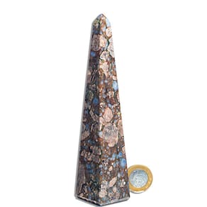 Obelisco Riolita Rosa Pedra Natural de Garimpo Lapidação de Obelisco NOME DAS PEDRAS: Riolita Rosa Natural COR DAS PEDRAS: Marrom com Rajas Rosa e Azuis (Foto Ilustrativa) CORTE DAS PEDRAS: Obelisco (Torre Piramidal) CLARIDADE DAS PEDRAS: Denso Brilhoso MEDIDA DAS PEDRAS: 17 a 18 centimetros aproximado PESO TOTAL DA PEDRA: 290 Gramas aproximado ORIGEM: Lapidação, Curvelo, MG NOTA: Por ser pedra natural podem apresentar variações em suas tonalidades e grafismos. Há também a possibilidade de ocorrerem pequenas inclusões que irão se assemelhar a fissuras, mas que são normais de minerais autentico de garimpo. Hidratação oleo mineral. São úteis na canalização de energia curativa e são ótimos acumuladores de luz, que é projetada pelo Obelisco Os Obeliscos promovem a concentração, intensificam e dirigem a energia entre chacras, bastandose apontar seu ápice para os mesmos, promovendo dessa forma, sua purificação ou renovação energética Também são ótimos para movimentação energética em ambientes Marca: CristaisdeCurvelo