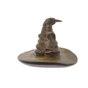 O chapéu Seletor Sorting Hat é uma peça indispensável na coleção de qualquer colecionador e fã da saga Harry Potter. Esta peça pode compor a decoração de qualquer mesa de trabalho ou estudo, estante ou mesa de cabeceira. Este modelo foi produzido na cor bronze.